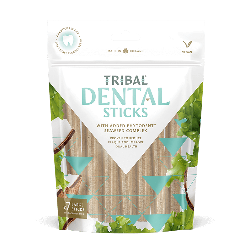 Tribal Dental Sticks yra veganiškas, be grūdų ir mažai riebalų, pagamintas be pridėtinio cukraus ar dirbtinių ingredientų, todėl tinka visiems šunims. Norėdami gauti geriausius rezultatus, maitinkite 1 lazdele per dieną mažiausiai 4 savaites.