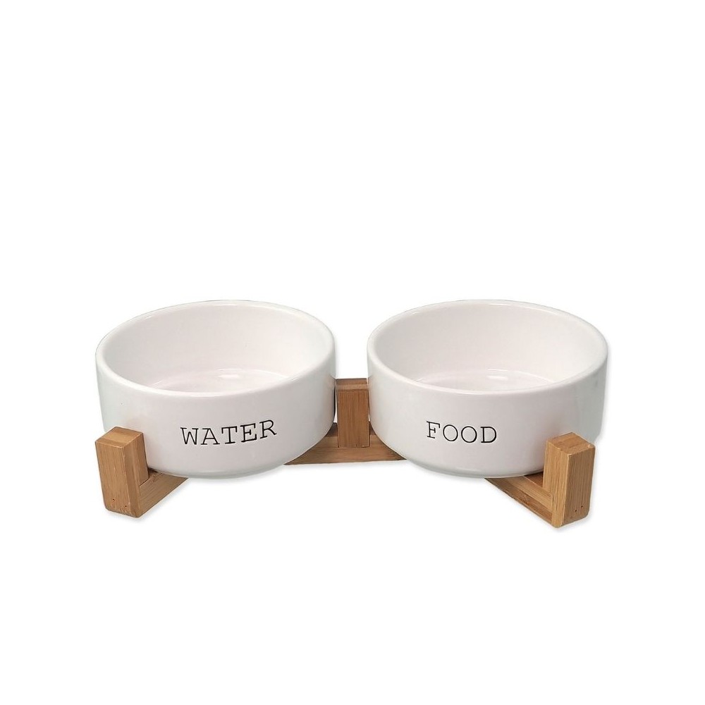 Dubenėliai su bambukiniu stovu, S, baltos spalvos