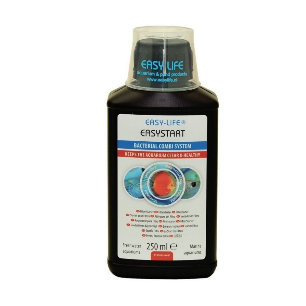 EasyStart sudėtyje yra aktyvių bakterijų kultūrų. Unikalus bakterijų nešėjas garantuoja greitą ir naudingą bakterijų dauginimąsi, kurios padeda kovoti su kenksmingų bakterijų veikla, o taip pat valo vandenį nuo sunkiųjų metalų ir kitų cheminių teršalų. Rezultatas – sveikas akvariumas ir gyvybingos bei ryškiaspalvės žuvys.