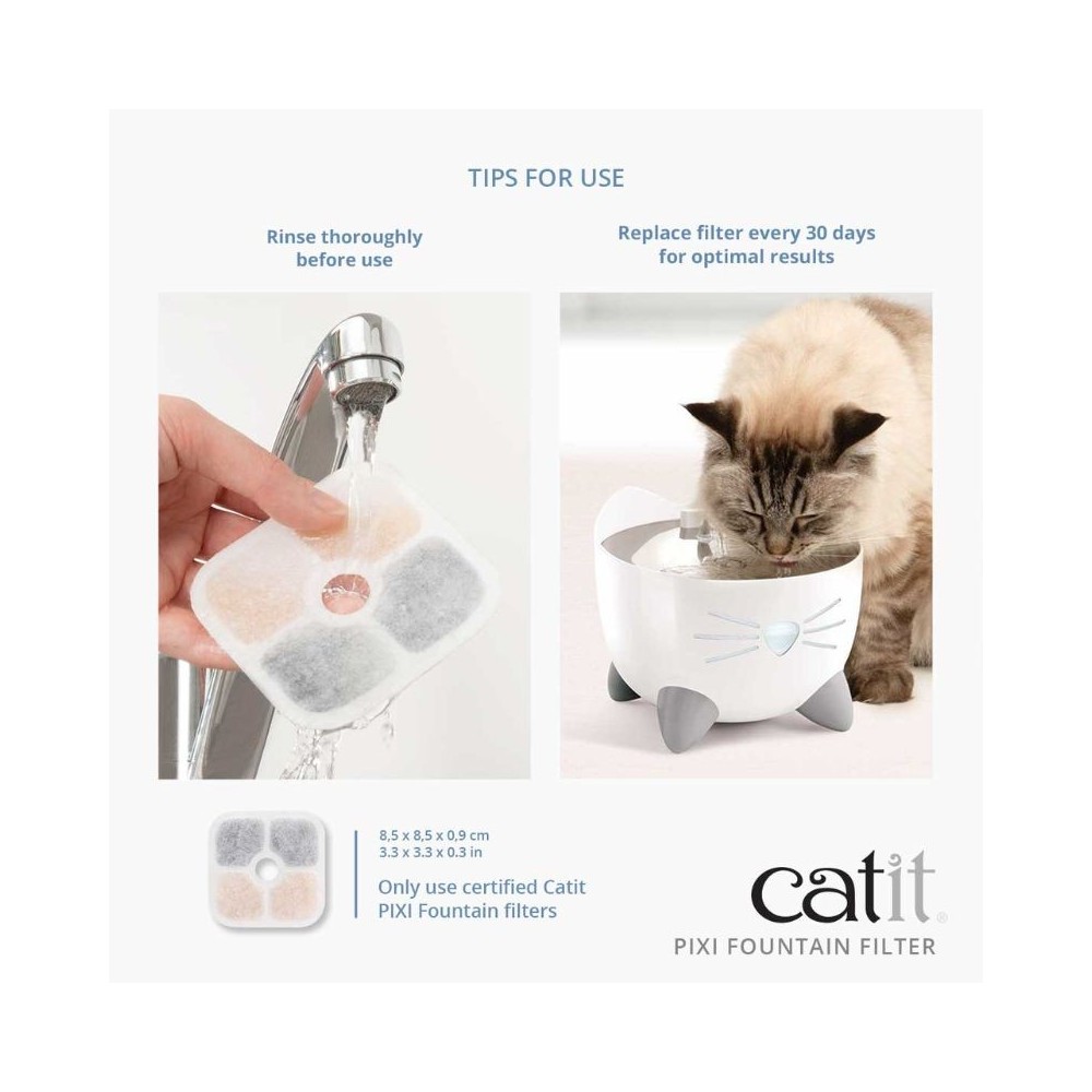 Kad išliktų sveikos, katės visuomet turi turėti prieigą prie švaraus vandens. Daugelis iš mūsų negali kontroliuoti vietinio vandens iš čiaupo kokybės, bet galime išvalyti savo katės geriamąjį vandenį, kad jis būtų sveikesnis ir skanesnis. Catit PIXI fontano filtras nuolat valo jūsų katės geriamąjį vandenį.