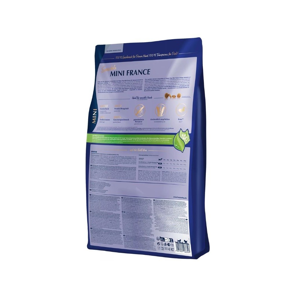 Happy Dog Mini France visavertis pašaras mažų veislių suaugusiems šunims su antiena ir bulvėmis 4 kg