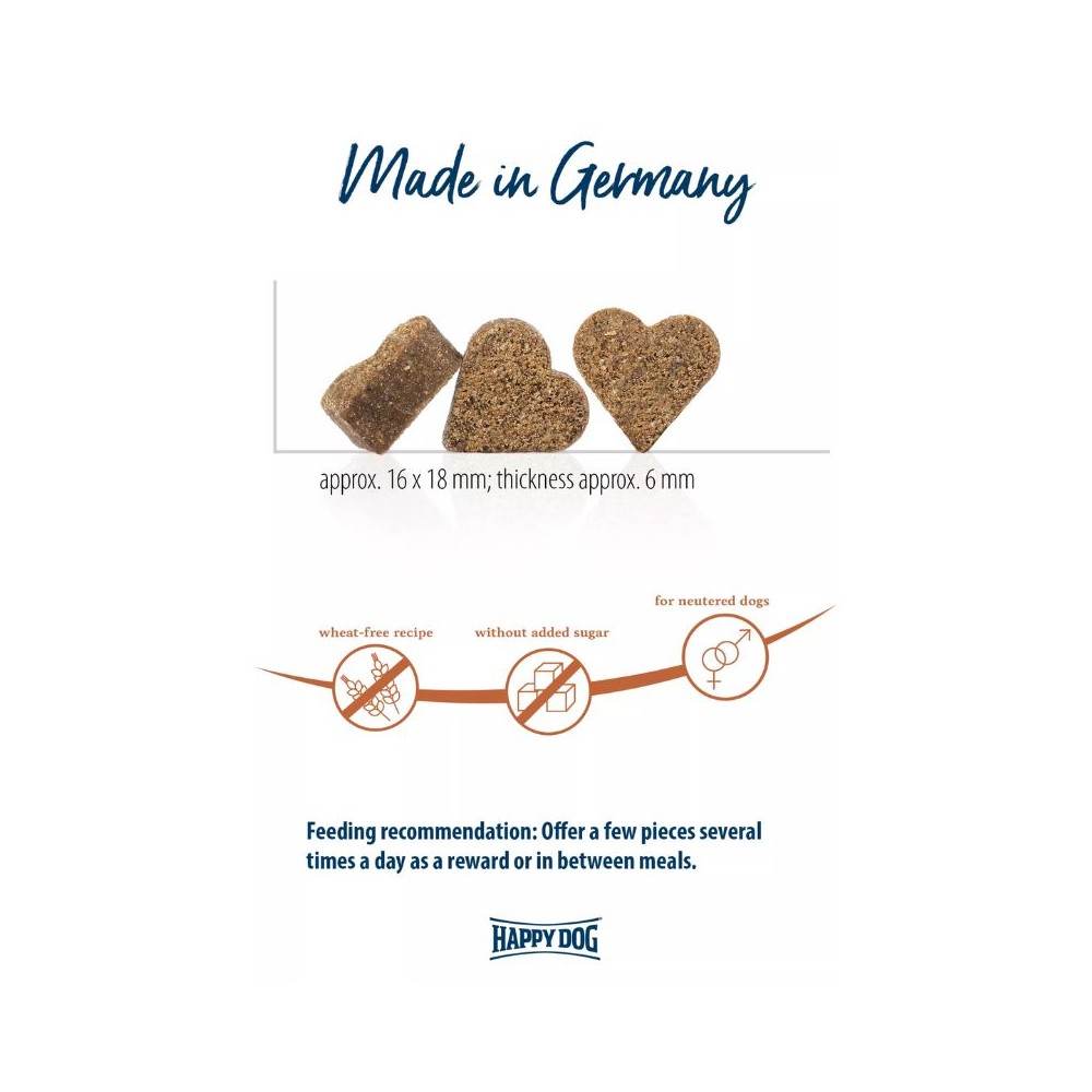 Minkšti širdelės formos skanėstai „Snack Toscana” puikiai tinka jūsų augintiniui palepinti. Lengvai virškinama antis ir puiki lašiša, pagardinta kvapniomis Viduržemio jūros regiono žolelėmis, yra tikras skonio potyris išrankiems augintiniams. Receptūra be kviečių ir su nedideliu riebalų kiekiu idealiai tinka vidutinių ir didelių veislių šunims, linkusiems į viršsvorį, kastruotiems šunims arba išrankiems šunims. Šie skanėstai pagaminti be pridėtinio cukraus ir be konservantų. Maišelis sandariai užsidaro, todėl užkandžiai ilgiau išlieka švieži.