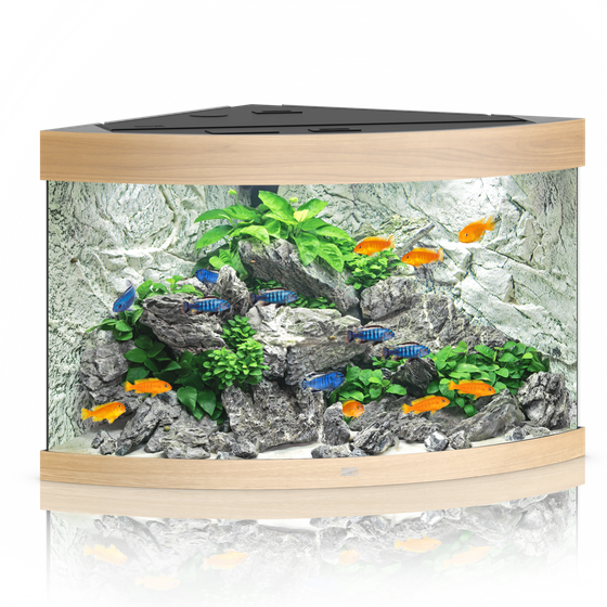 Juwel Trigon 190 LED akvariumas 190l – tai išskirtinis kampinis akvariumas su elegantiškai lenktu priekiniu stiklu, leidžiantis maksimaliai išnaudoti kambario erdvę. Šis modelis puikiai tinka statyti kambario kampe ir sukuria įspūdingą panoraminį vaizdą.