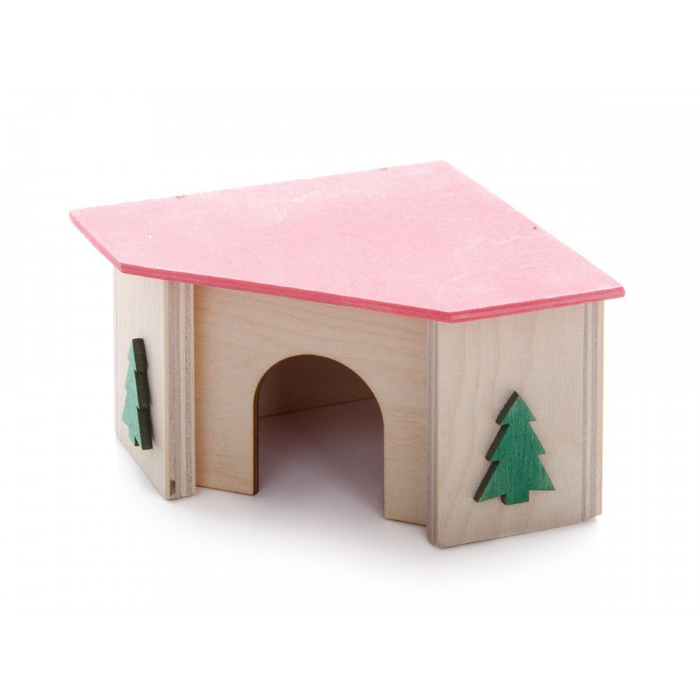 Namas-fanerinis, spalvingas (nekenksmingi maistiniai dažai). Jūsų graužikui tai slėptuvė, suteikianti augintiniui saugumo jausmą ir garantuojanti ramų jo miegą. Plokščias stogas leis graužikui patogiai tupėti. Namas yra trikampio formos, todėl patogu laikyti narvo kampe. Tai suteikia daugiau erdvės kitiems augintinio žaidimams.
