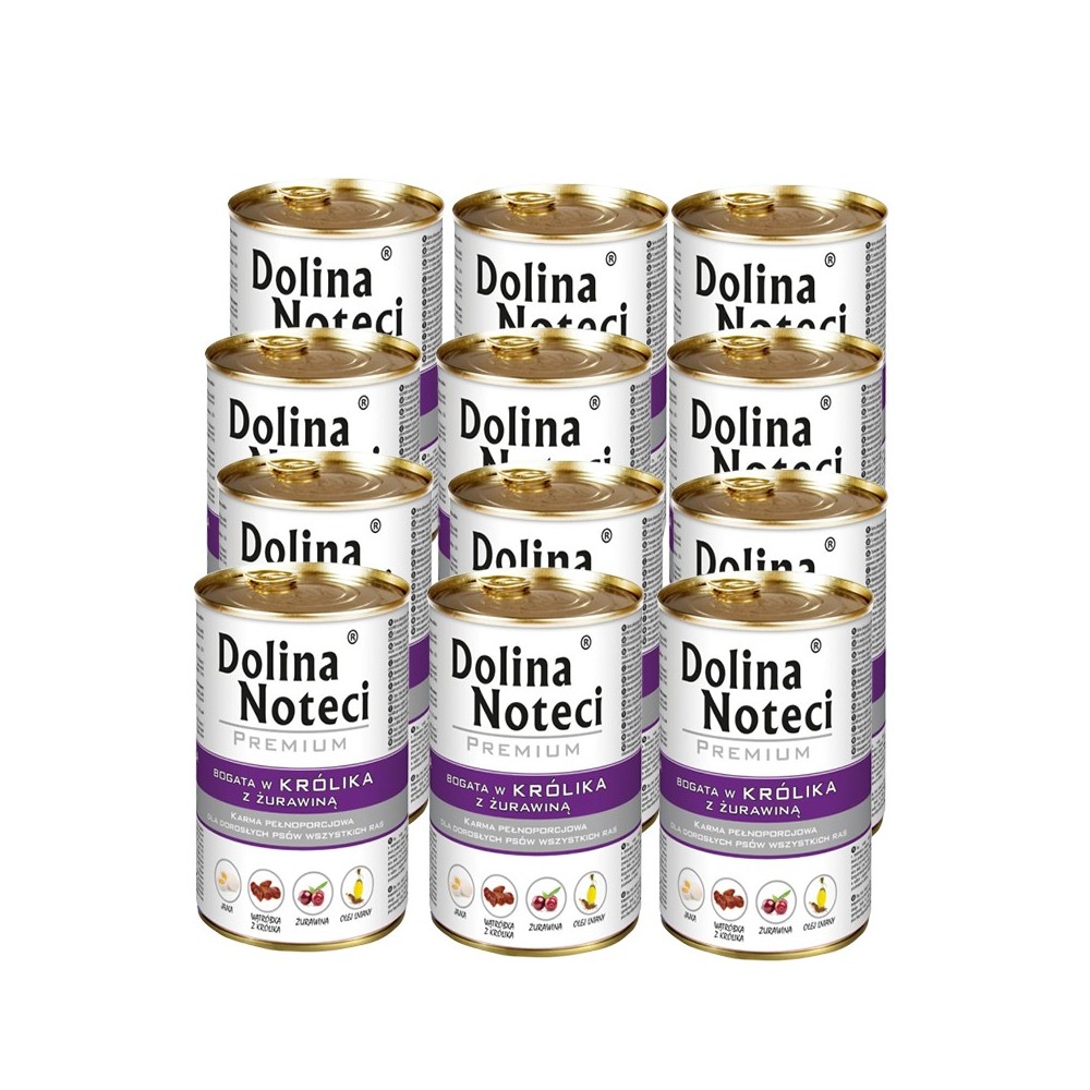 Konservai šunims su triušiena ir spanguolėmis Dolina Noteci Premium, 12 x 400 g