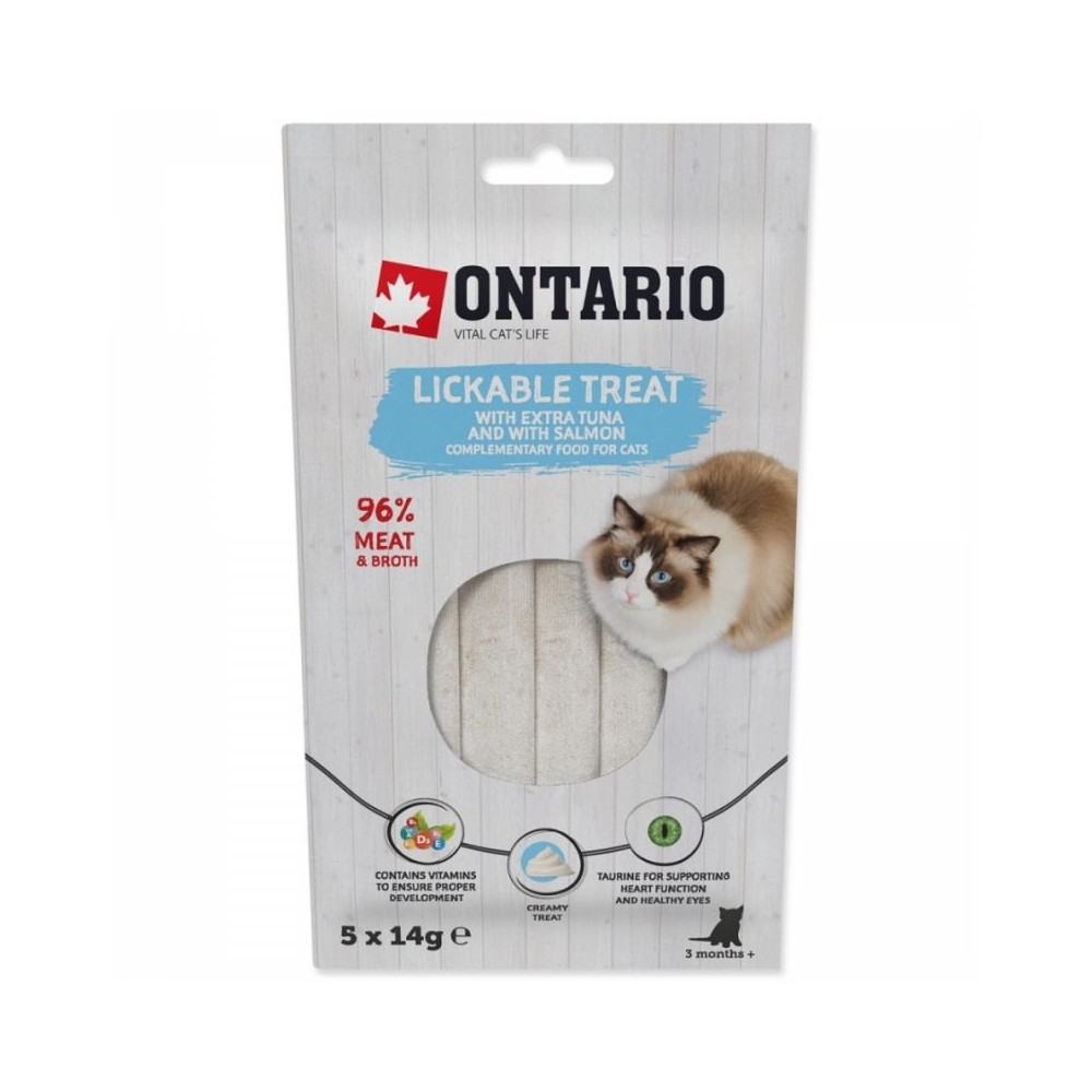 Ontario laižomi skanėstai supakuoti patogioje penkių 14 g tūbelių pakuotėje, kad pasta būtų šviežia ir paruošta patiekti. Katę galite šerti tiesiai iš tūbelės, ant laižymo kilimėlio, kitų interaktyvių žaislų arba naudoti sauso maisto skoniui pagerinti, jei katė jo atsisako.