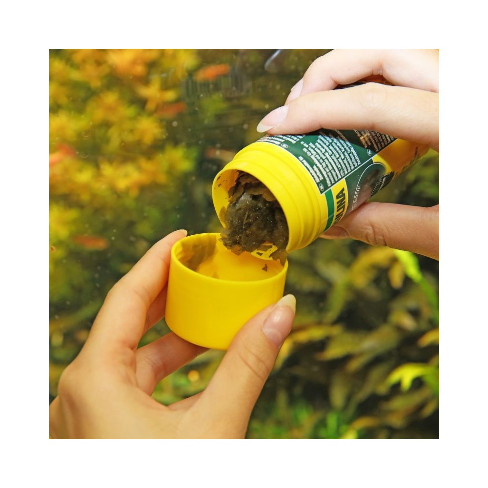 Plaukiantis, prebiotinis maistas. Su spirulina. Skirtas žolėdėms (augalais/dumbliais mintančioms) akvariumo žuvims, tokioms kaip ciklidai iš Malavio ir Tanganikos ežerų