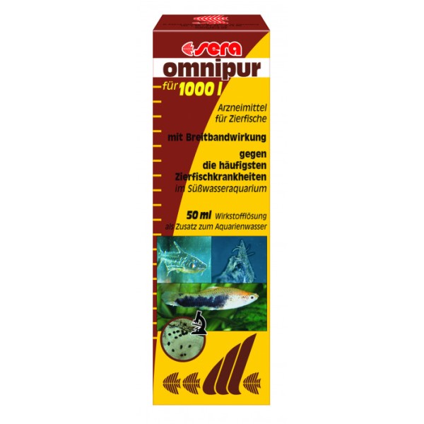 Sera Omnipur / Omniforte – tai plataus veikimo vaistai, skirti dekoratyvinių žuvų ligų gydymui gėlavandeniuose akvariumuose. Preparatas padeda efektyviai kovoti su dažniausiomis žuvų ligomis, tokiomis kaip bakterinės infekcijos, grybeliniai susirgimai ir išoriniai parazitai. Tinka tiek gydymui, tiek profilaktikai, siekiant apsaugoti akvariumo žuvis nuo ligų plitimo.