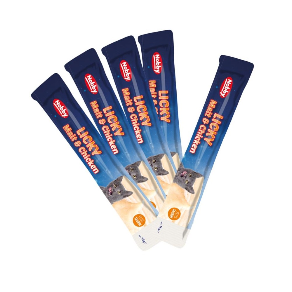Skanėstas katėms su malt pasta ir vištiena Licky, 5×15 g