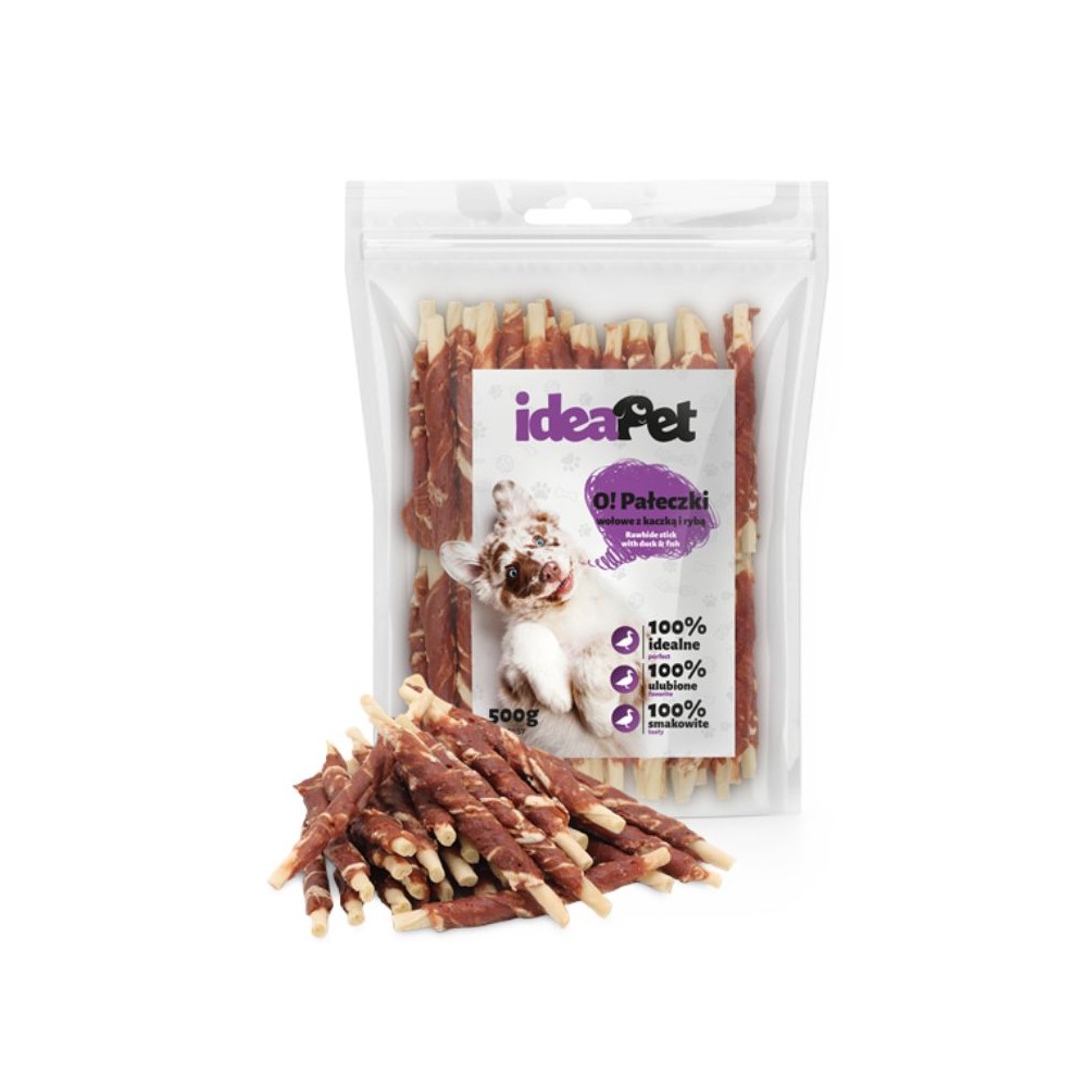 Skanėstas šunims galvijų odos pagaliukai su antiena ir žuvimi, 500 g