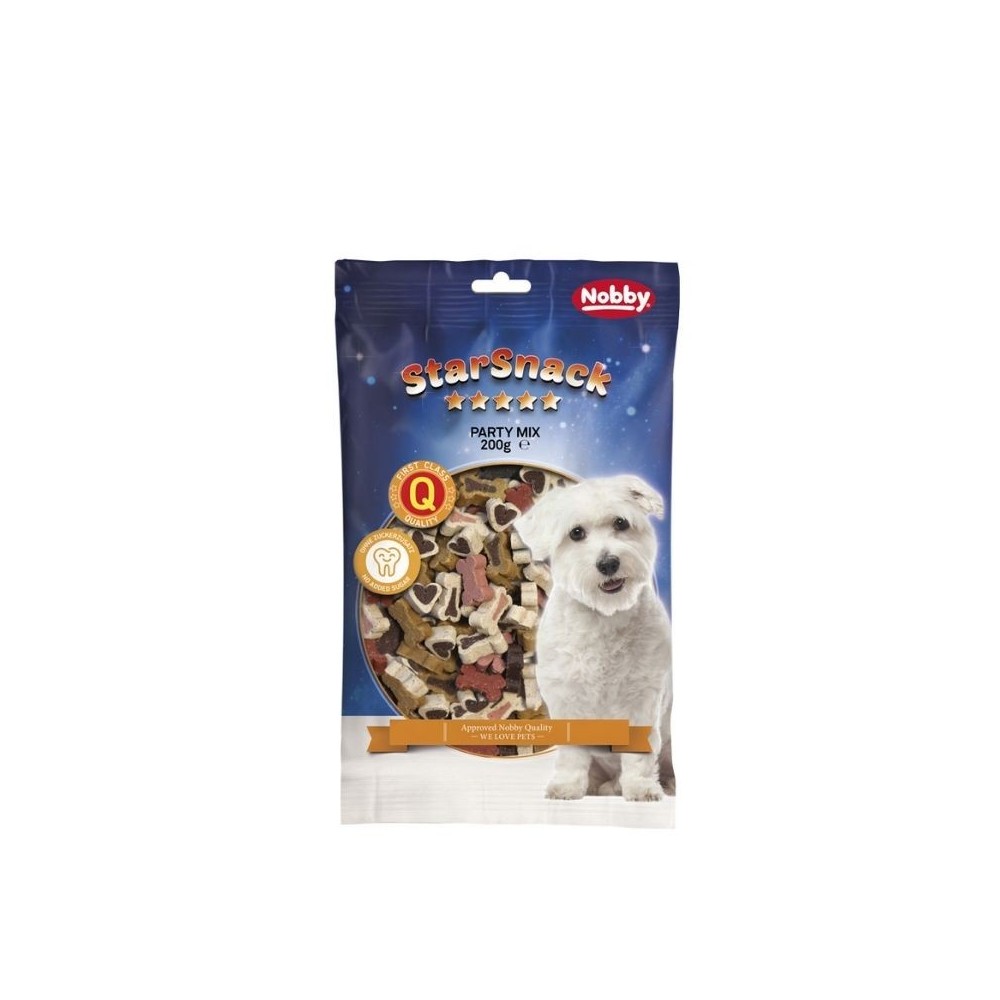 Minkšti skanėstai šunims StarSnack Party Mix skirti dresūrai ir paskatinimui, tuo mačiu papildo kasdienę mirybą reikiamais mineralais. Su įvairių rūšių mėsa. Mažai kaloringi, nedideli, įvairių formų gabalėliai.