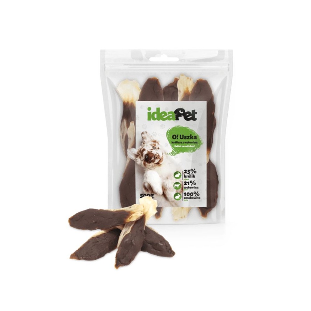 Suteikite savo šuniui ne tik gardų, bet ir sveiką užkandį! Triušių ausys su jautiena yra natūralus, baltymais praturtintas skanėstas, puikiai tinkantis kaip kasdienė užkandžio alternatyva ar atlygis už gerą elgesį.