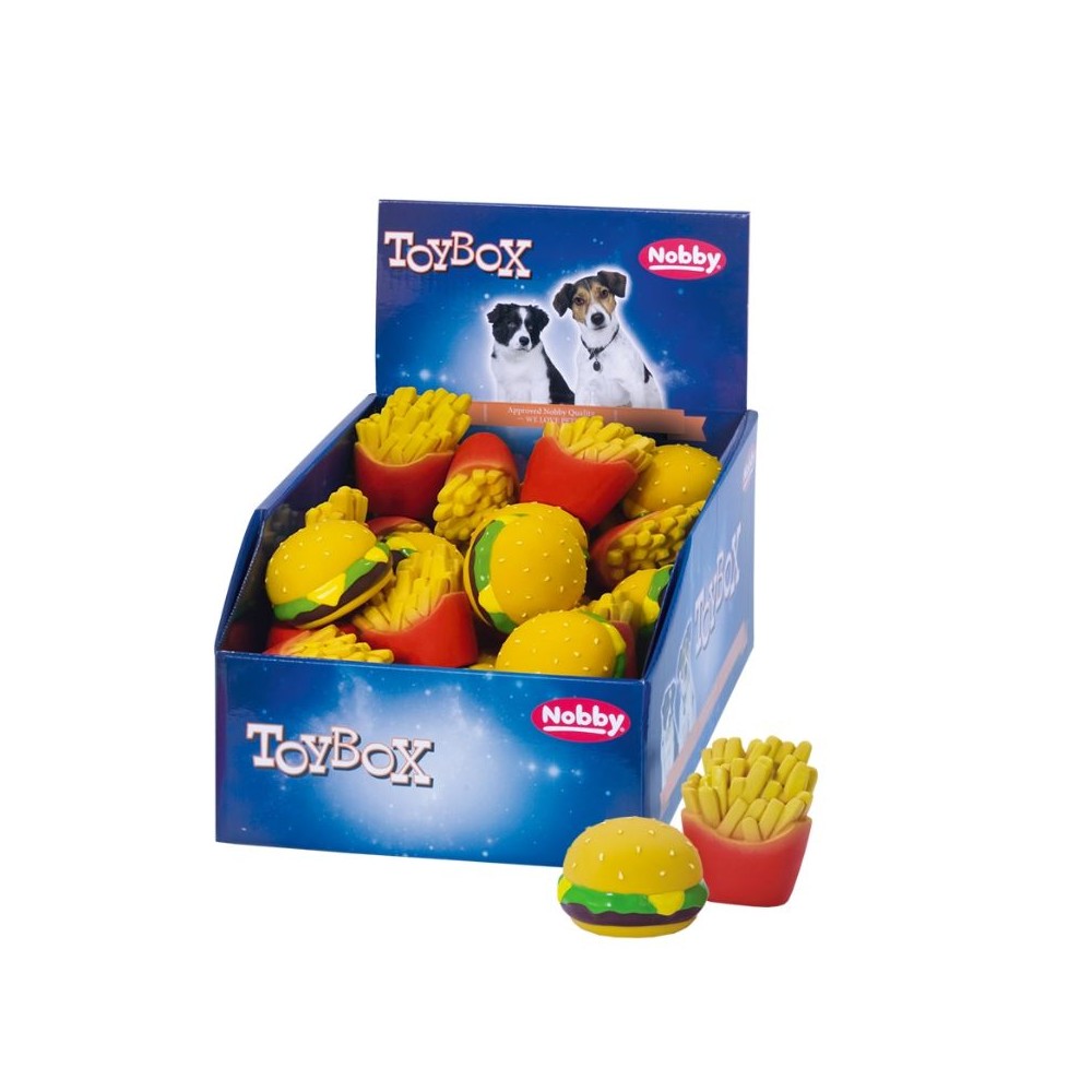 „Nobby Fastfood“ – tai linksmi ir originalūs lateksiniai žaislai šunims. Žaislai primena greitojo maisto produktus – mėsainį ir bulvytes fri. Visi jie turi įmontuotus cypukus, kurie skatina šuns susidomėjimą ir žaidimą. Puikiai tinka mažesniems ir vidutinio dydžio šunims.
