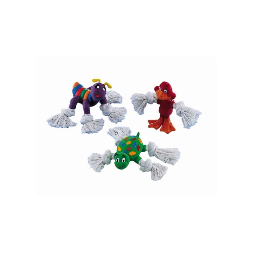 Žaislas šunims lateksinis gyvūnėlis su virve 12-14 cm