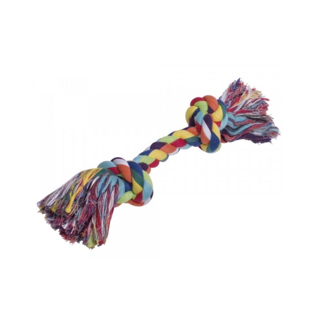 Suteikite savo šuniui džiaugsmo ir rūpinkitės jo dantų sveikata su šiuo 390 g svorio virviniu žaislu su dviem mazgais – puikus pasirinkimas aktyviems ir energingiems augintiniams!